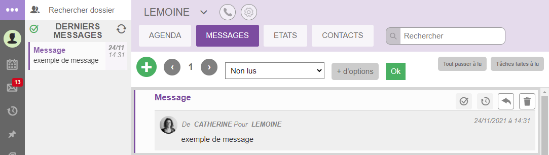 - Tâches faites à lu : cliquer pour passer toutes les tâches faites à «lu».